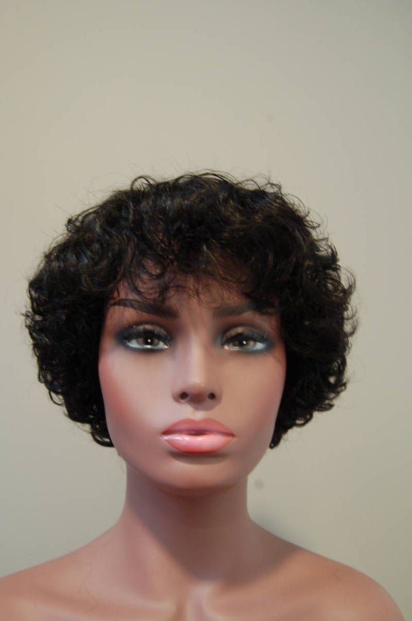 Uit de Wigs by Hairglow human hair curly collection is dit haarwerk Arjana. Een korte boblijn met pony in een natuurlijke donkere kleur. Het haar voelt zijdezacht aan en is eenvoudig te sylen.
