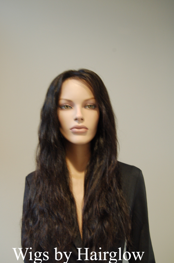 Uit de Wigs by Hairglow curly human hair collection is dit haarwerk Elektra. Een prachtige bos met lange donkere lokken in natural straight. De krullen op de laatste foto's zijn er met een curlwand ingezet.
