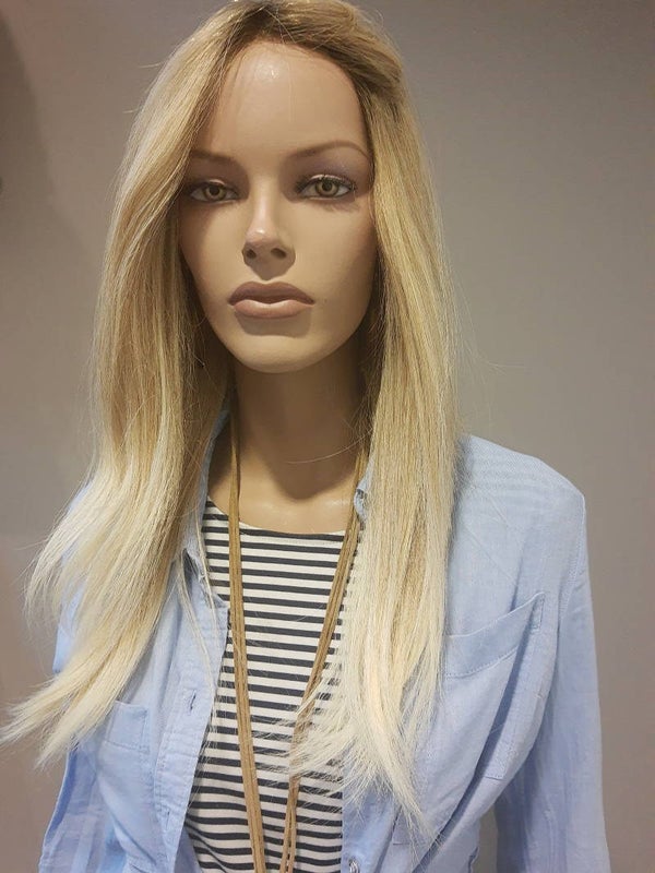 De light blonde mix met donkere uitgroei zorgt voor een extra natuurlijke uitstraling. De haren van dit haarwerk zijn er individueel ingeknoopt, dit is zeer arbeidsintensief werk maar wel met het allemooiste resultaat. Je ziet het niet alleen maar je voelt het ook. De cap zit goed op het hoofd en is in grootte verstelbaar. Het draagt zeer licht en comfortabel. Als je elke dag een haarwerk op hebt dan wil je natuurlijk wel voor absolute comfort en gemak.