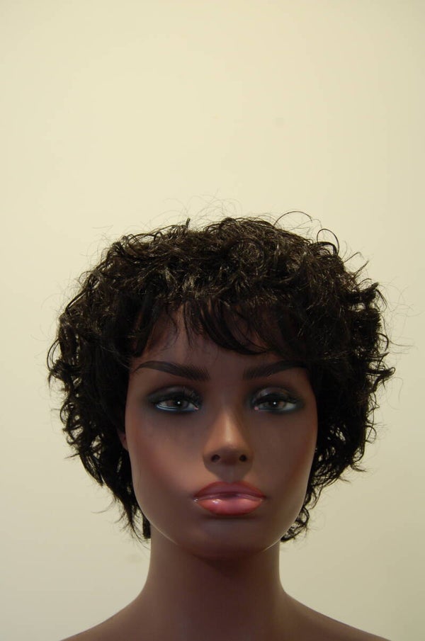 Erna is een kort krullend haarwerk in de kleur zwart.