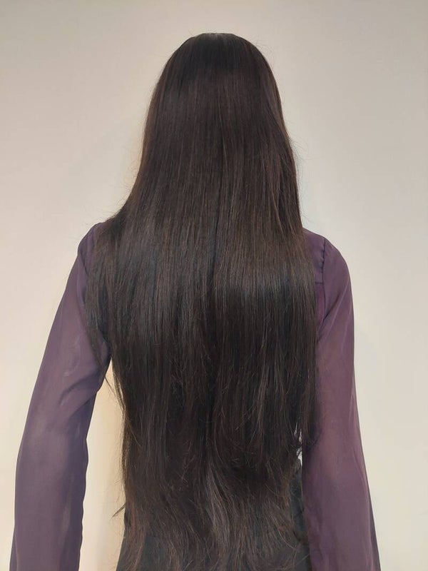 Mina is een 360 lace wig van zeer mooie kwaliteit in 30 inch. Het haar is super zacht, de knopen zijn geplukt en zeer fijn waardoor de pruik een extra natuurlijke uitstraling heeft. Een warme donkere mix van de donkerste kleuren geeft het haar veel diepte. Lang haar zonder teveel volume en een prachtige vulling.