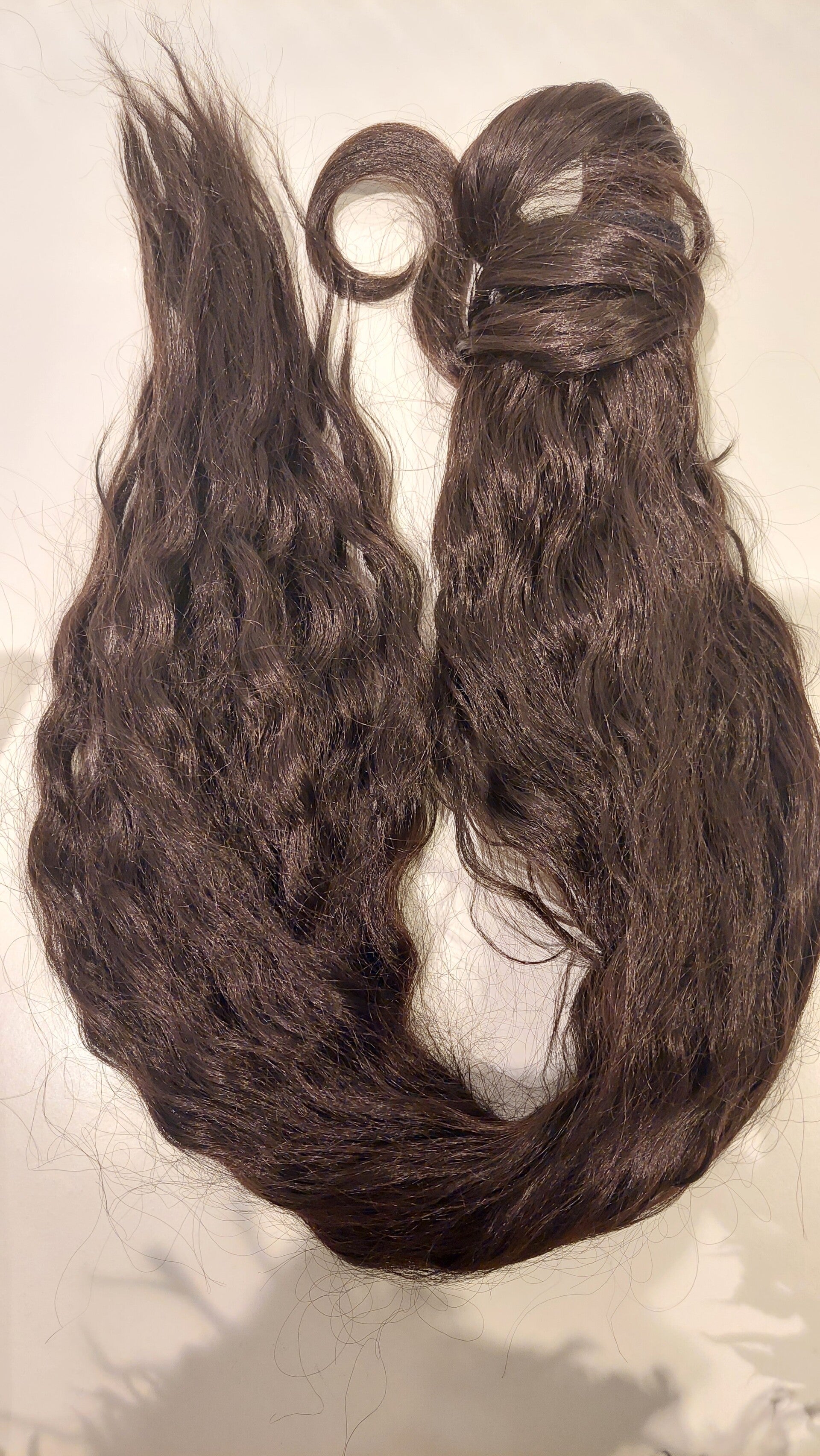 Een geweldige lange en volle bos met haar met deze wavy ponytail.De lengte is 95 cm en eenvoudig te bevestigen met klittenband en strookje haar om erheen te wikkelen.Verkrijgbaar in Kleur 3, afgebeeld in foto nr.2